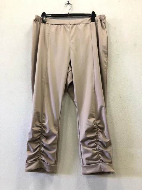 薄手の伸び伸びストレッチ素材フロントギャザーのクロップドパンツ