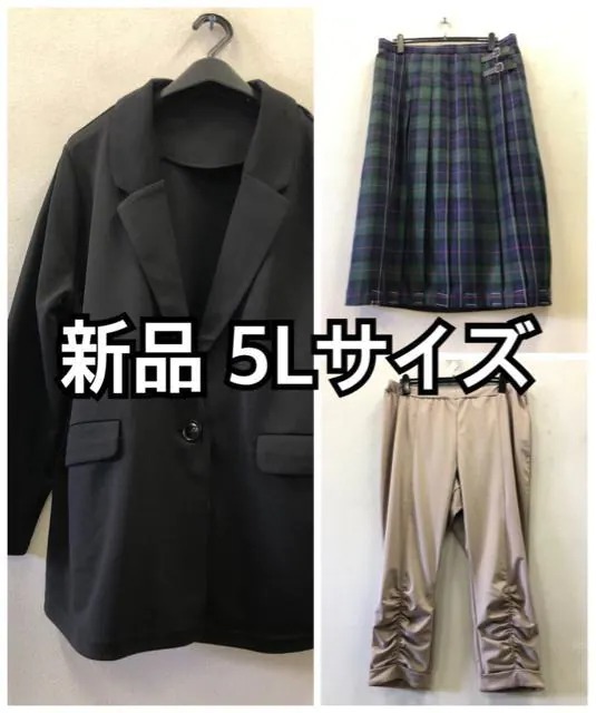 新品☆5L♪黒ジャケット・チェックスカート・柔らかパンツ♪f204