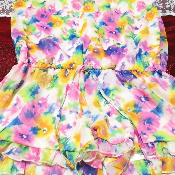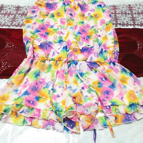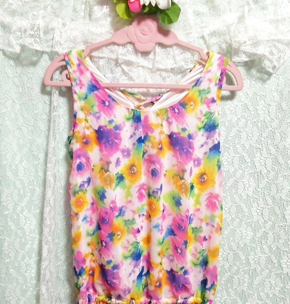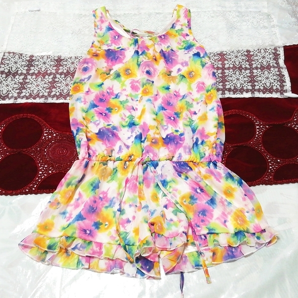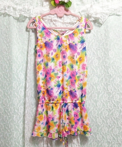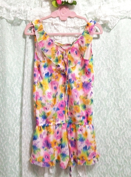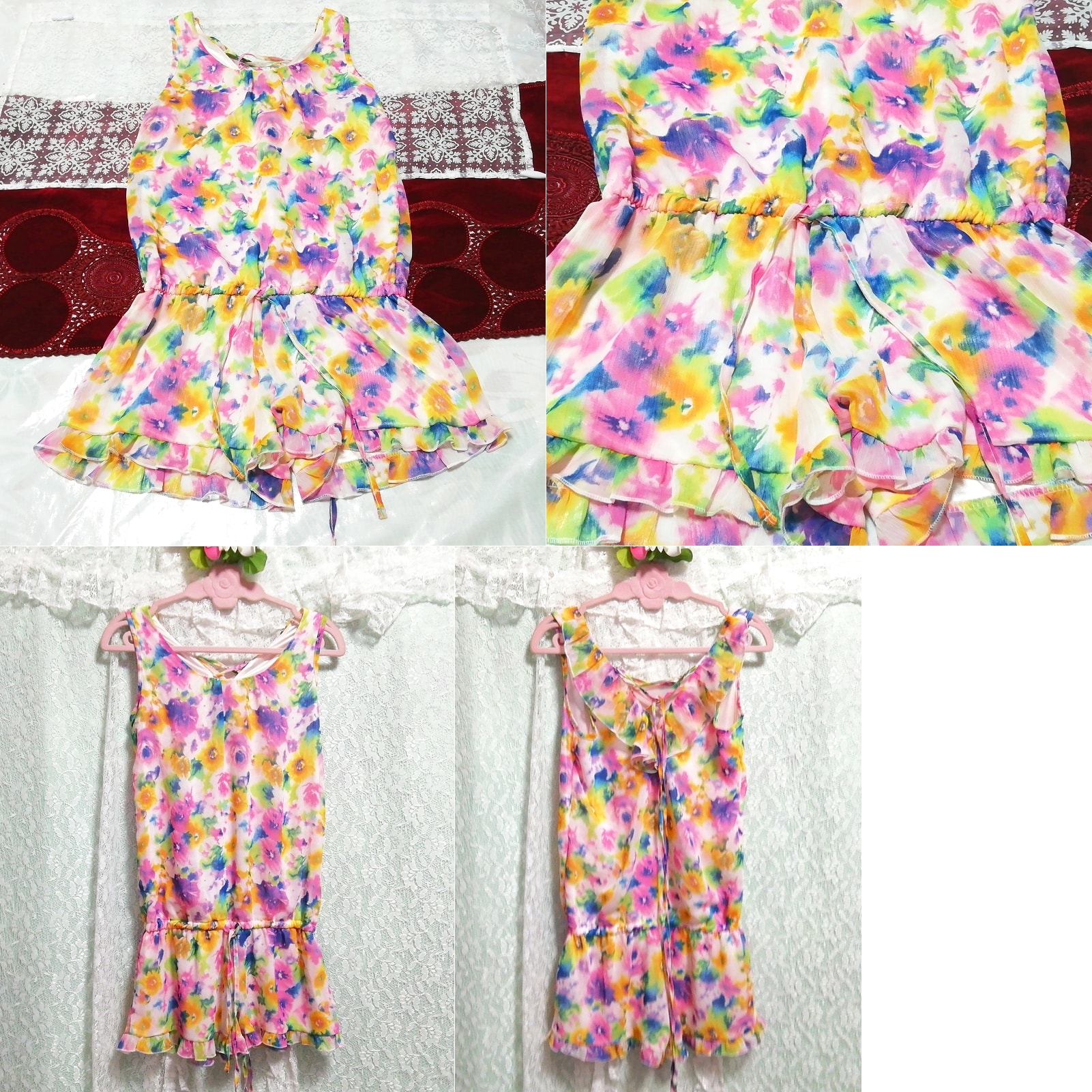 ピンク緑白シフォンキュロットノースリーブネグリジェナイトウェア Pink green white chiffon sleeveless negligee nightwear