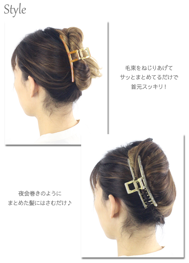 | 商品説明 | アセテートのマーブル柄×ゴールド縁取りが、大人ファッションにピッタリ!! 大きめのバンスクリップでホールド力もしっかりしていますので、 夜会巻き風にしたり毛束をねじりあげてサッとまとめてるだけで首元すっきり!! |