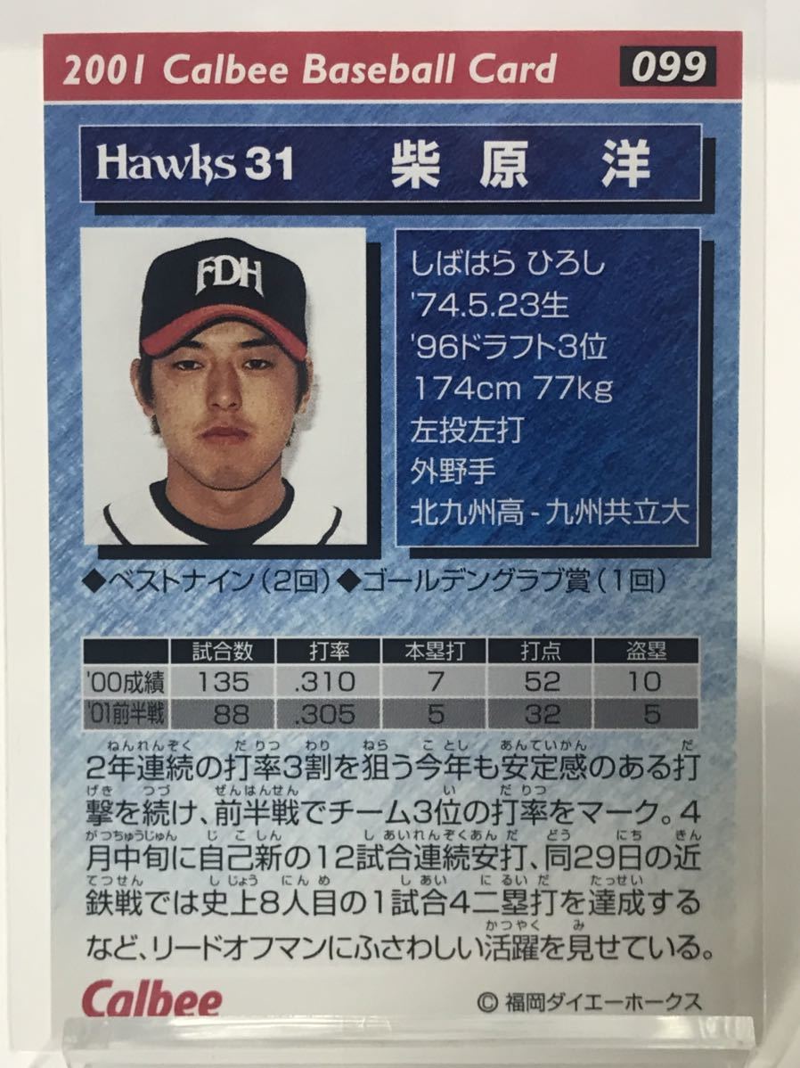 柴原洋 099 カルビープロ野球チップス 2001 福岡ダイエーホークス