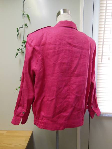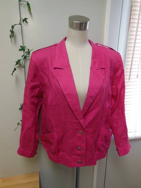 鮮やかなピンクが綺麗なリネン素材のジャケットになります。