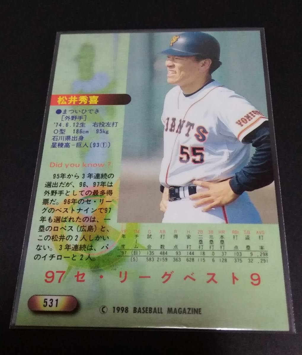 1998年BBM 松井秀喜(巨人)ベスト9!No,531。