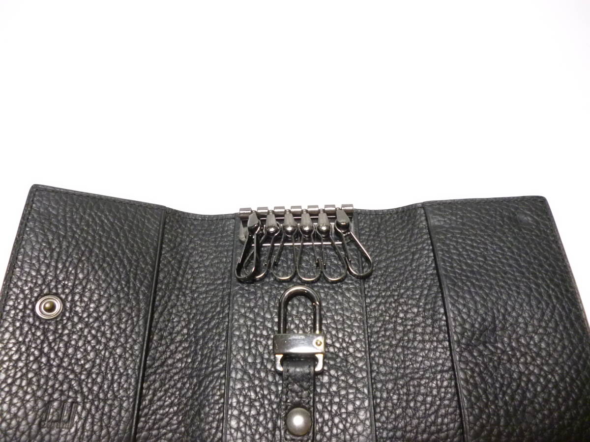 商品説明 | ダンヒル dunhill 6連+1 キーケース L2P950A ヨーク 美品です。 品番:L2P950A MADE IN ITALY カラー:ブラック 素材:カーフレザー(型押し) 金具:ブラックパール キーフック×6、キーリング×1 オープンポケット×2 サイズ:約W72mm×98mm×D20mm 付属品:なし 商品詳細(状態) 表皮:ほぼ綺麗です。 角スレ:ありません。 金具:キーフックステー部分に若干、スレ、キーリングに、一部、メッキはがれがあります。 内側:金具の押し跡がありますが、あとは、綺麗です。 |