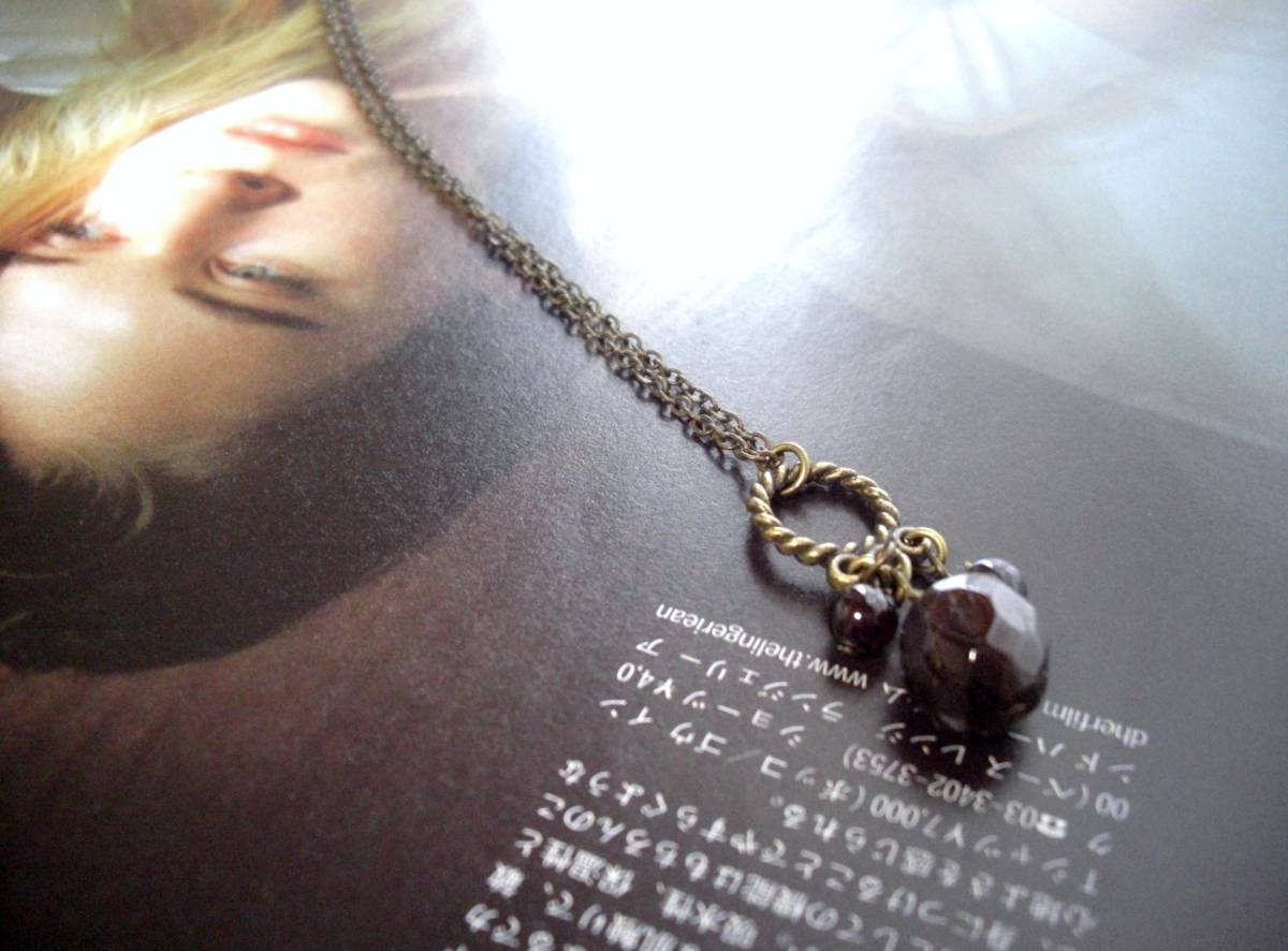 心躍らせるもの・・シリーズです♪深い赤のガーネットのネックレスです♪ラフカットのガーネットが可憐な表情です♪華奢な チェーンに座金でおめかしした11ミリ位のラフカットのガーネットです♪長さは80センチ+アジャスター8センチで最長88センチ位です♪♪お揃いのシリーズも出品しています♪♪シンプルで飽きのこないいつまでも着けられるデザインを考えて作りました!ハンドメイドをご理解頂いてノークレーム、ノーリター ンでお願いします