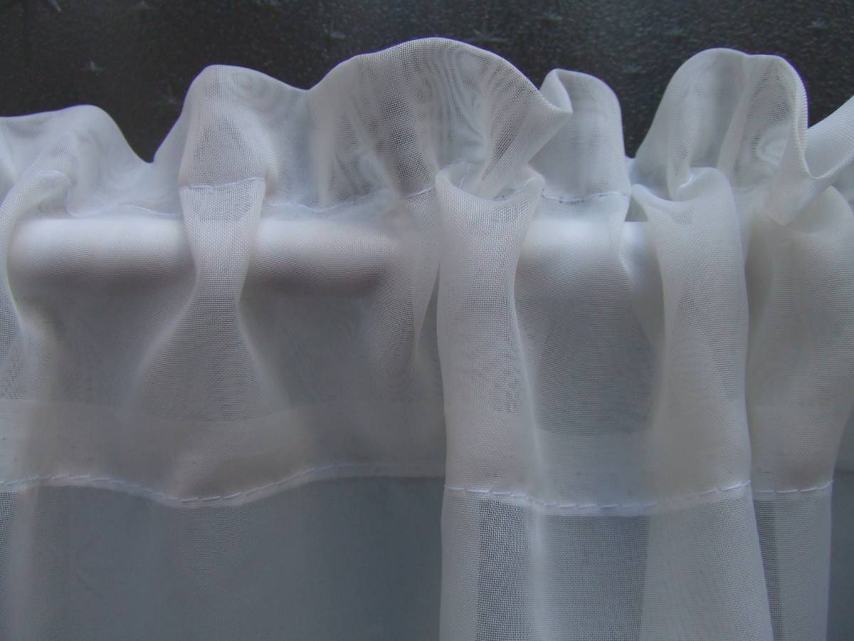 ■生地:ポリエステル100% ■サイズ:実寸幅190cmx丈62cm ■色:オフホワイト ■商品名:MK35-596 ■その他:小窓は勿論、お部屋の間仕切りや、棚などの目隠しとしてもお使いいただけます。トルコ製の生地です。裾に幅、35㎜のトリムを付けております。 |