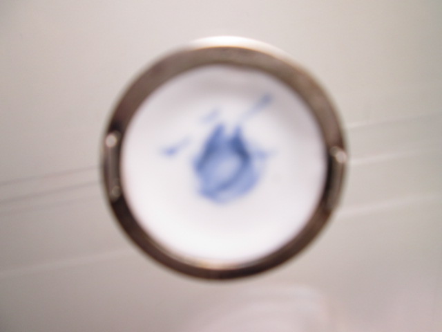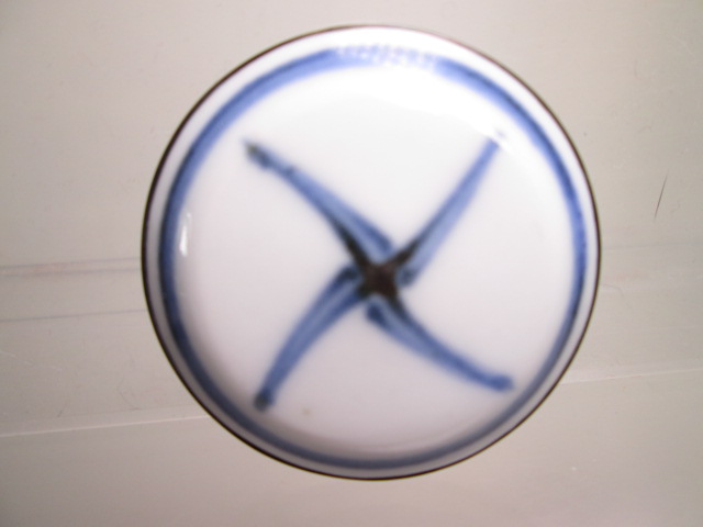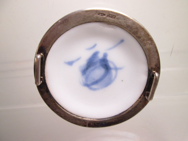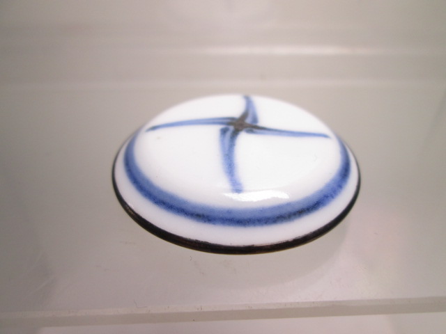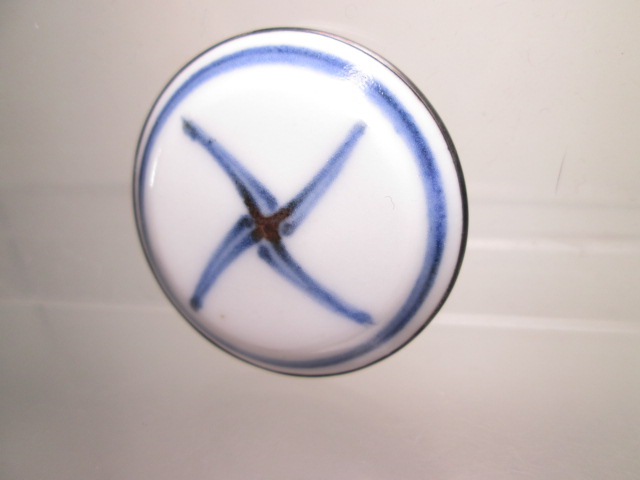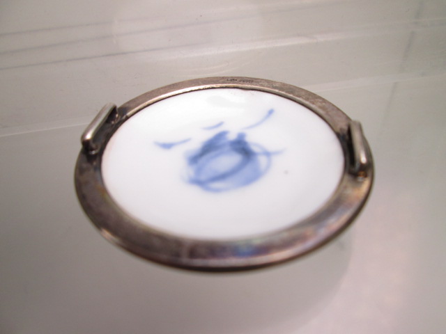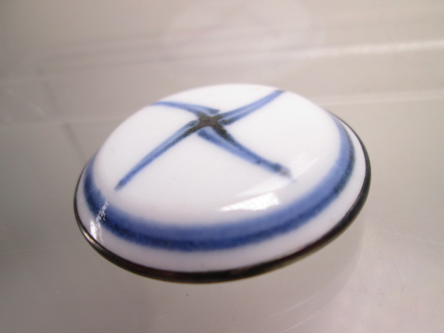 【江月】人間国宝 富本憲吉造 銀 陶製 染付捻じり花文の帯留め