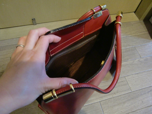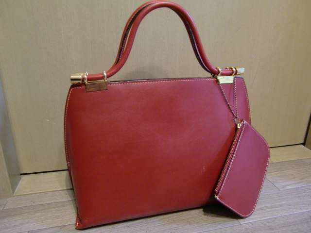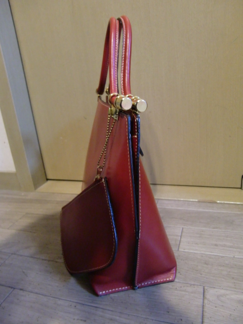 日本製の本革のミニポーチ付きハンドバッグのワインレッドです♪ 上品なワインレッドのハンドバッグでとても素敵です★ 内側はブラウン地になっています。 中にはファスナー付きのポケットと、その他収納が1つ付いています。 裏側にもファスナー付きのポケットが付いています。 1,2回しか使っていませんが、表面にキズがあります; ご了承いただける方のみ、ご入札お願い致します。 どなたか気に入ってくださる方、いらっしゃいましたら是非どうぞ! **商品詳細** サイズ: 横幅 下 31cm 上 29cm マチ 12cm 高さ 22cm(持ち手含まず) 発送方法ですが、東京から ゆうパックおてがる版80サイズ または 補償は有りませんが 全国一律 定形外920円でお届け致します。 **注意事項** ※USEDですので、多少の汚れ、キズがある場合がありますのでご理解の上ご入札下さい。 ※商品画像は明るさ、光の反射等で実物と多少色合いが変わってみえることがございますが ご理解下さい。 ※素人採寸ですので多少の誤差が生じるかもしれませんがご了承下さい。くださいませ。 ※3日以内に入金が可能な方のみご入札ください NC/NRでお願いします。 ※お振込みの手数料と送料は落札者様の側でご負担をお願いします。 ※送料ですがなるべく一番安い方法で発送させていただきますが、過不足があった場合は 請求も返金も致しませんのでご了承ください。 | ||