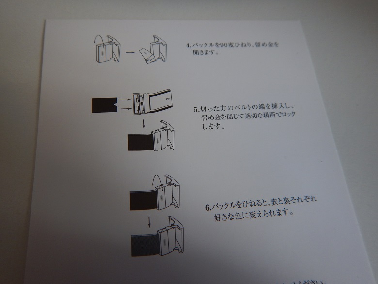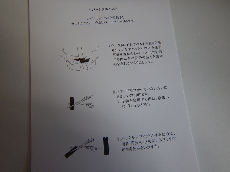 このベルトはベルトの長さをカスタムフィット(ご自身で切って調節)できるタイプです。