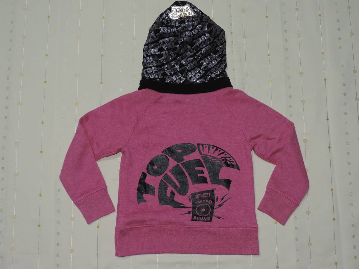 ☆とりとマイクプリントラメ文字プリントピンクの長袖パーカー☆120センチ