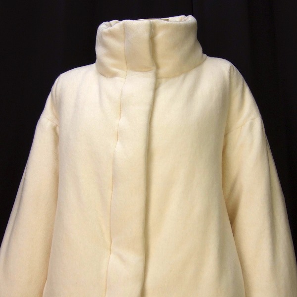 素材 表地:カシミヤ100% コード部分:人工皮革 裏地:キュプラ(ベンベルグ)100% 詰物:ダウン80% フェザー20%