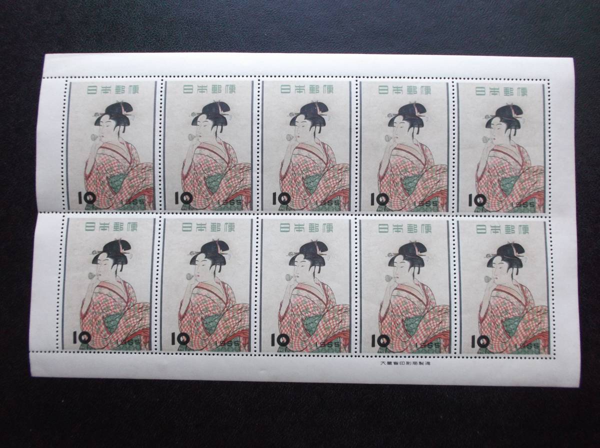 昔懐かしい切手 シート 切手趣味週間 Philatelic Week 喜多川歌麿「ビードロを吹く娘」UTAMARO 1955.11.1発行