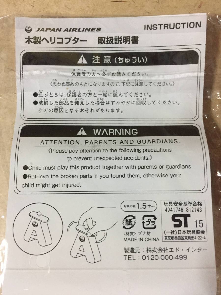 【同梱不可!】【JAL】 木製 ヘリコプター★A