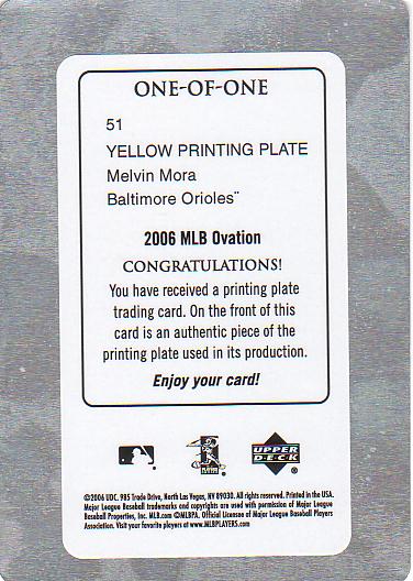 | 商品紹介 | 06 ULTIMATE BOX特典 06 MLB Ovation Baltimore Orioles 'Melvin Mora' 1of1 YELLOW PRINTING PLATE |