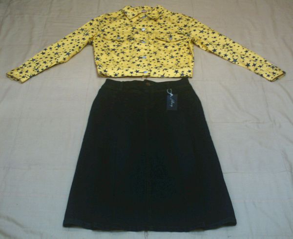 ■新品:Girl Star黄色に★のジージャンとデニムスカート  (Dm961)