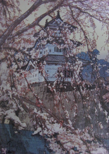 吉田博、【弘前城】、希少画集画、高級新品額・額装付、状態美麗、送料無料