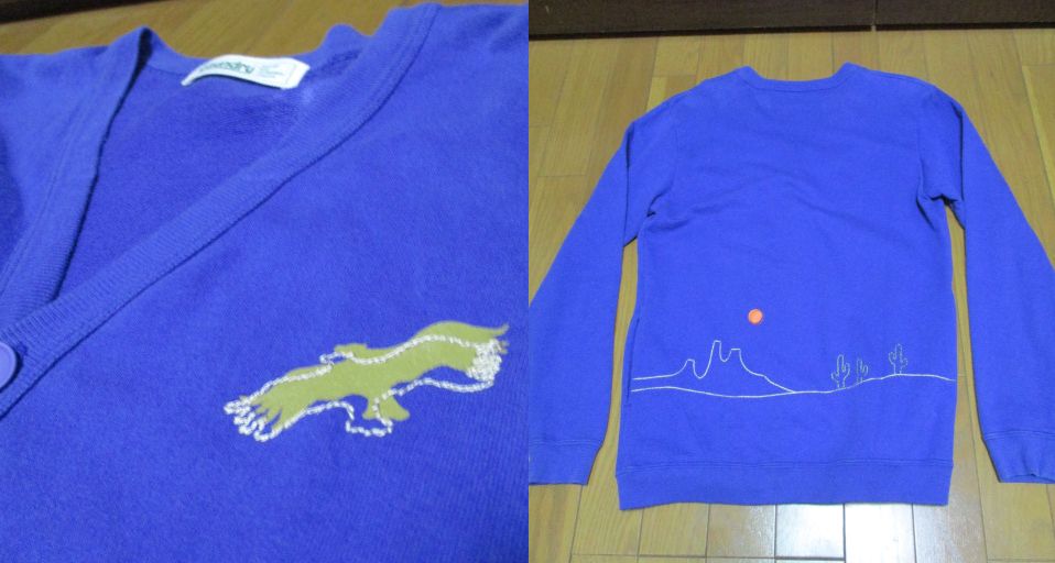 日本製 Laundry スウェット カーディガン 荒野 ウェスタン 西部劇 サボテン 鷹 鷲 刺繍 柄 Sサイズ ランドリー