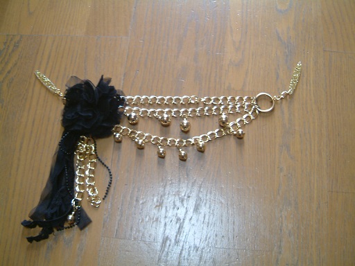 手作り新品!大人用!金チェーン×黒花 帯飾り 着物・浴衣に!!
