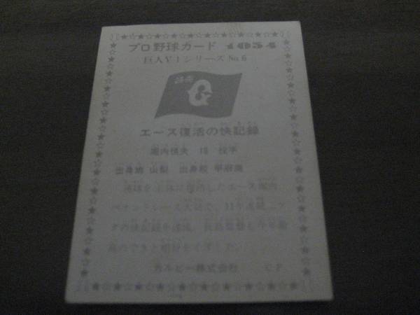 ■カルビー1976年/No1054/巨人V1シリーズNo6/堀内恒夫/巨人 | ||