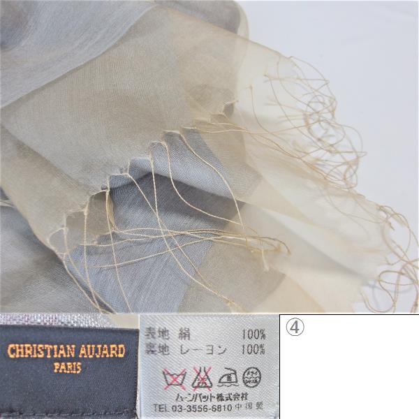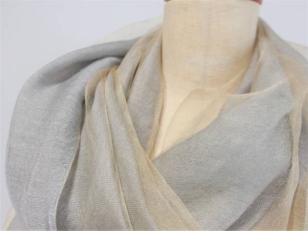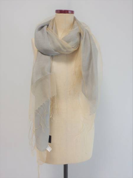 | ・商品説明・ サイズ: 67cm×180cm(フリンジは含みません。フリンジの長さ、左右各10cm) 色: ベージュ×グレー シミ、汚れはありません。 使用感も少なく美品です。 生地は二重になっています。 ベージュのシルク生地はシャリ感のある生地です。 ・コメント・ 他にも出品しておりますのでご覧ください。 |