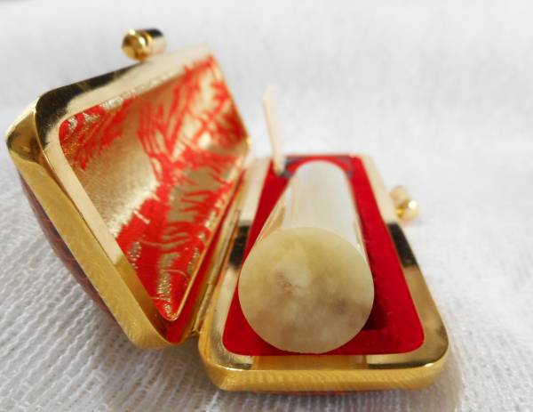 赤トカゲ印鑑ケース付。印材もケースも印鑑店の展示用の在庫処分の商品です。