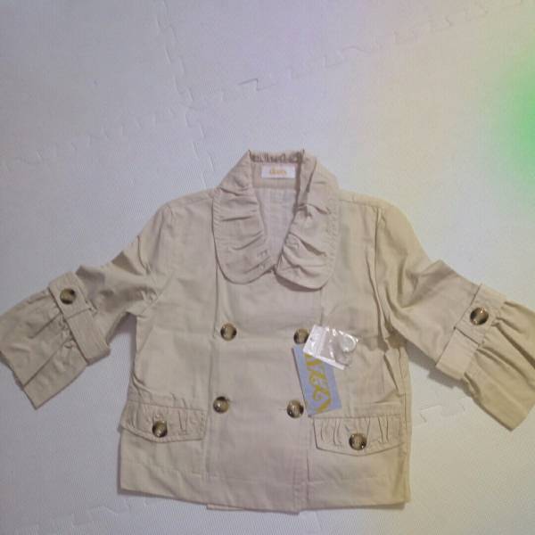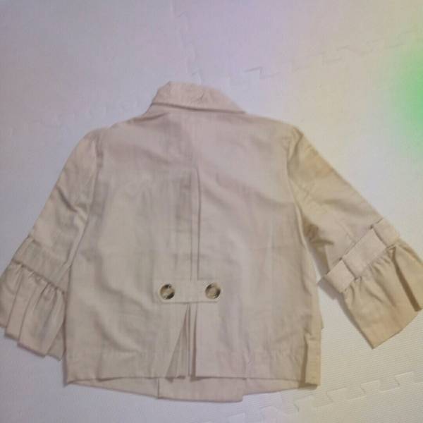 ショート丈のトレンチコートです。袖はフリル袖で7分。新品タグつき。サイズM、着丈50cm、横幅42cm、袖丈38cm。自宅保存の為、気がつかない点があるかもしれません。そのことを考慮した上で、ノークレームノーリターンでよろしくお願い致します。商品は別宅にあります。商品管理は週1回、だいたい日曜日に行いますので、発送はおもに日曜日か月曜日になります。落札日によっては、発送までに1週間ほどかかります。ご了承下さいませ。