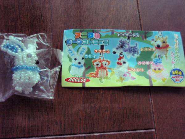 新品 未使用 ガチャガチャ アニマル ビーズ ストラップ ウサギ ビーズ細工 ミニチュア