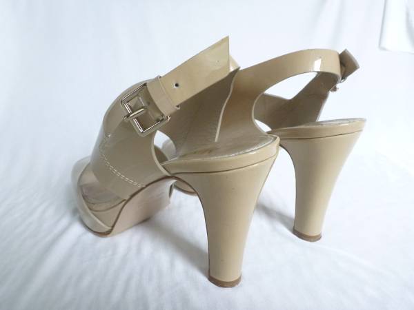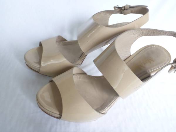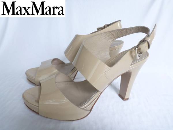4万マックスマーラ Max Mara ベージュ本革エナメル サンダル 22.5