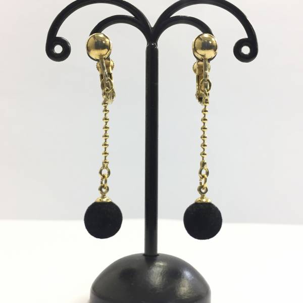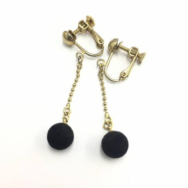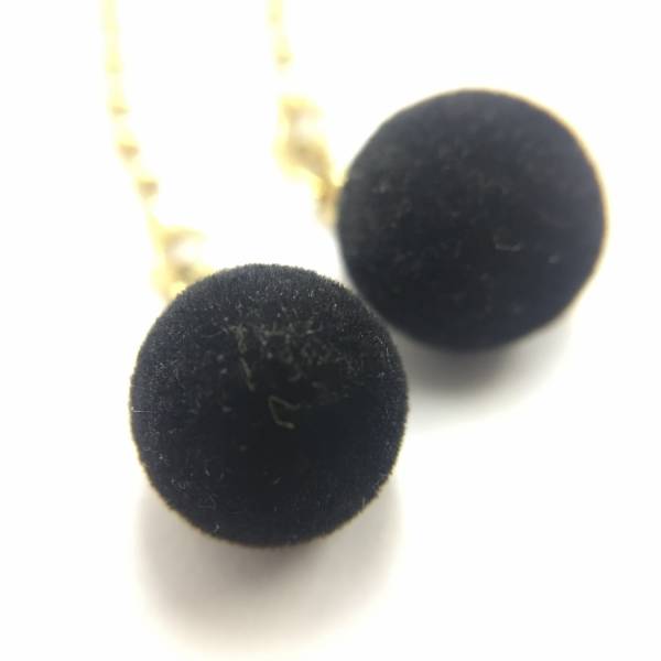 マリモのような黒い玉が付いたイヤリングです。詳細素材は不明ですが、触った感じベルベットのようなフェルトのような…そんな質感です。 シンプルながらシックで可愛い雰囲気が素敵です。