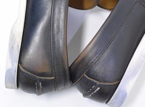 「BEDWIN & THE HEARTBREAKERS×REGAL」のOG LOAFERS "BYFIELD"。 ・素材:カウハイドレザー。 ・カラー:ブラック。 ・サイズ:1 (23.5cm)。 実寸・全長 約26.5cm・幅 約9.5cm。(多少の誤差はお許しください) BEDWINがREGALに別注した、デッキシューズをベースにしたオリジナルローファー「BYFIELD」。 表革にホーウィン社のクロムエクセルを使用し、デッキシューズの木型とソールを使用する事で、履きやすい仕上がりになっております。 踵のつまみを配色ステッチにし、アッパーのベルトにブランドロゴの型押しを入れております。 メーカー表記は23.5cmですが、普段25cmの靴を履いていても履くことが出来ました。実寸サイズと合わせて参考にしていただければと思います。 箱あり。定価¥37000+TAX。 使用感があり、アッパーやインソールに擦れや汚れ、ソールに減りが見られますが、まだまだ問題なく履いていただけます。 かなりお値打ちだと思います。この機会にぜひ!。 他にもいろいろ出品しています。 管理番号:261602MY-077676 ★ PD252508-300 |