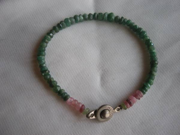 グリーンの天然石ブレスレット 留め金の所だけ色が変えてあります。