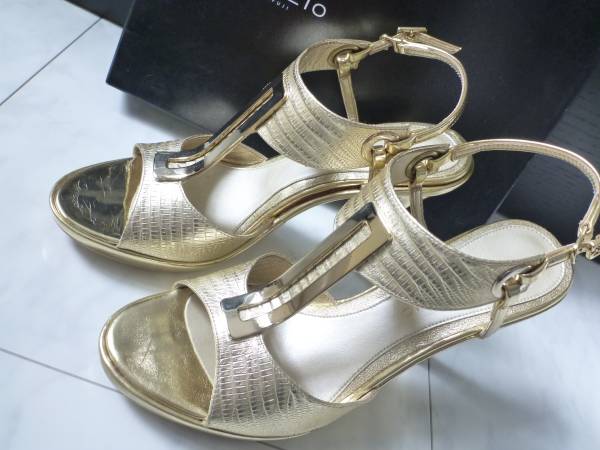 3万 新品 NOVESPAZIOノーベスパジオ 高級感 本革 ゴールド サンダル 23