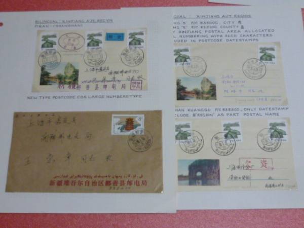 №24 中国 切手 辺境カバー 新彊省 各地消 欠資印付含 計16通