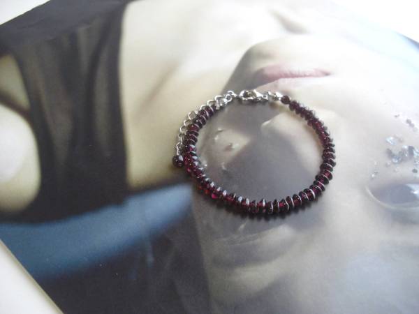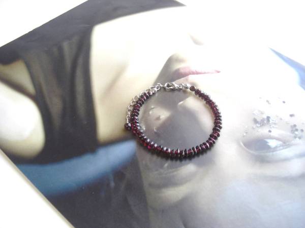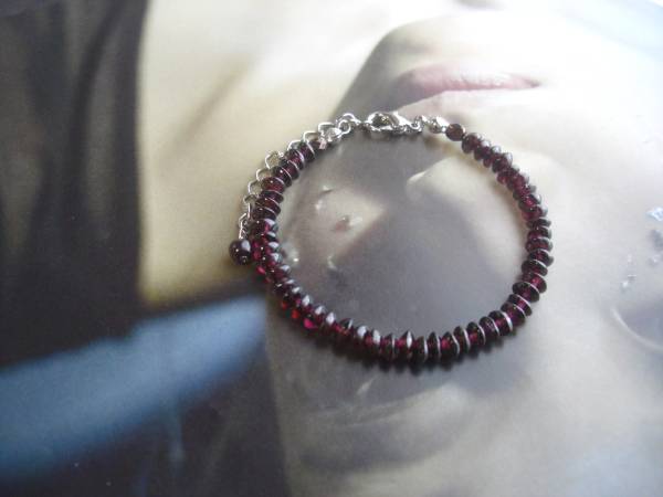 ガーリー・スタイル・・シリーズです♪ガーネット・セレクト・・深い赤のガーネットのブレスレットです♪深い赤のガーネットが可憐な表情です♪ガーネットは3×5ミリ位 のボタンカットです♪長さは16センチ+アジャスター6センチで 全長22セン チ位です♪お揃いのネックレスも出品しています♪♪シン プルで飽きのこないいつまでも着けられるデザインを考えて作りました!ハンドメイドをご理解頂いてノー クレーム、ノーリターンでお願いします