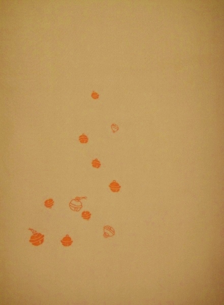 染型を使い【吉祥鈴】の柄を「紅緋色」で染めた≪友禅洒落物ワンポイント八掛≫です。