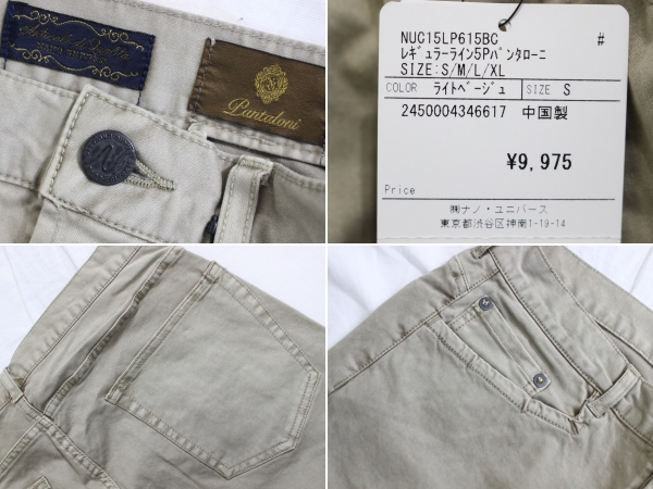 新品*nano universe ナノユニバース*レギュラーライン5Pパンタローニパンツ S ライトベージュ【465-4818】
