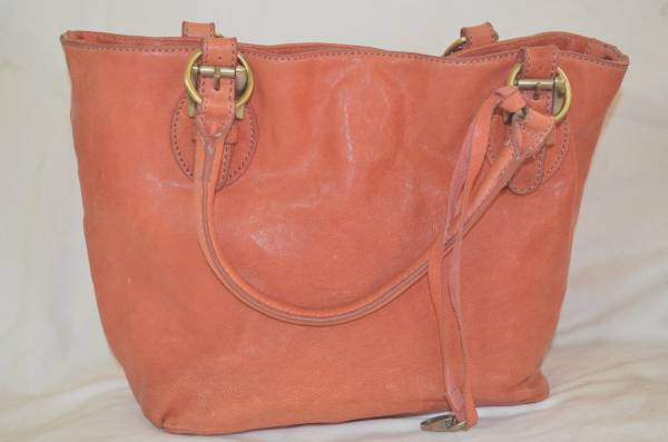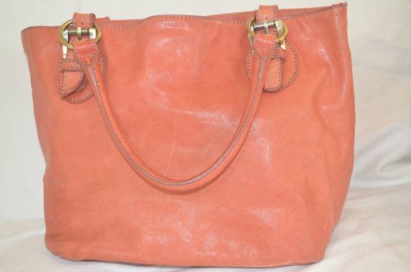 商品説明 | 使用品 オレンジ×皮製 前後同じデザイン 底角&少々すり傷汚れあります。 サイズ:W24cm×D16cm×H22cm 持ち手40cm 内部ポケット 2つ 詳しく写真参考 |