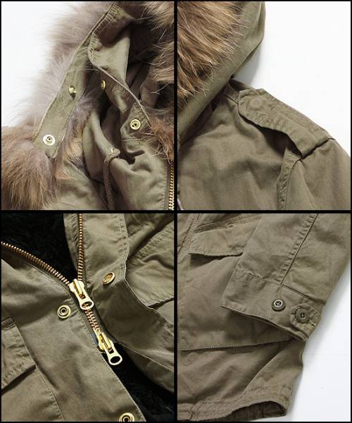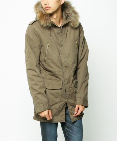 フード部分にはボリュームたっぷりのラクーンファーを配置。