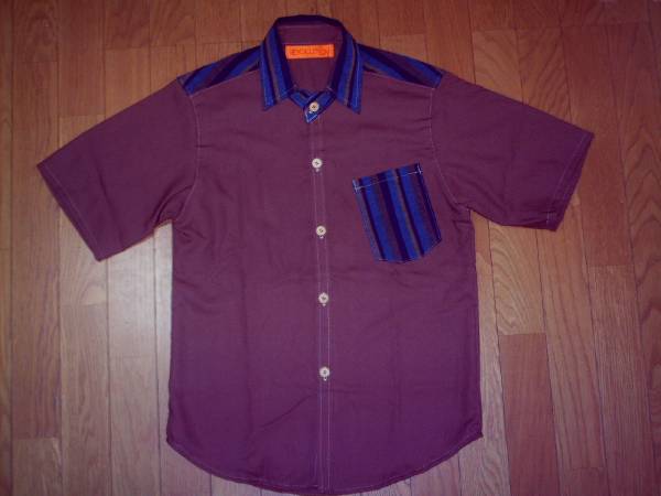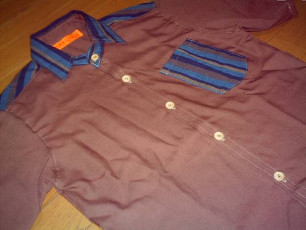 ☆手作り☆ 遠州縞(笠井縞)生地付き半袖シャツ S 茶 送無料あり