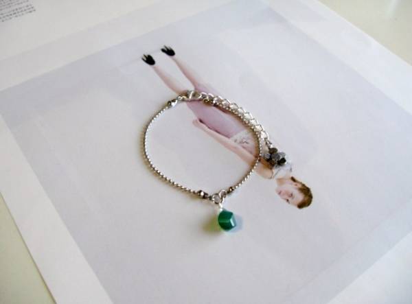 クレアの幸せ・・シリーズです♪神秘的なダークグリーン・・シックなグリーンオニキスのブレスレットです♪フラワーデザインのチャームや華奢なボールチェーンを合わせてスタイリッシュなデザインです♪グリーンオニキスは9ミリ×7ミリ位のツイストドロップです♪長さは16センチ+アジャスター6センチで最長22センチ位です♪お揃いのネックレスやピアスも出品しています♪シンプルで飽きのこないいつまでも着けられるデザインを考えて作りました♪ハンドメイドをご理解頂いてノークレーム、ノーリターンでお願いします