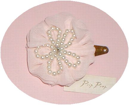 シフォンのような地に細かなパールが施された、上品で可愛らしい髪留めの出品です。