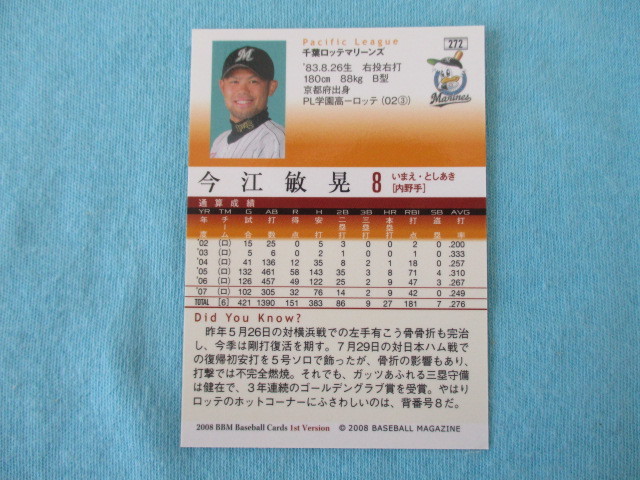 ★BBM 2008★ 1st Version〔272 今江敏晃 千葉ロッテマリーンズ〕トレカ♪