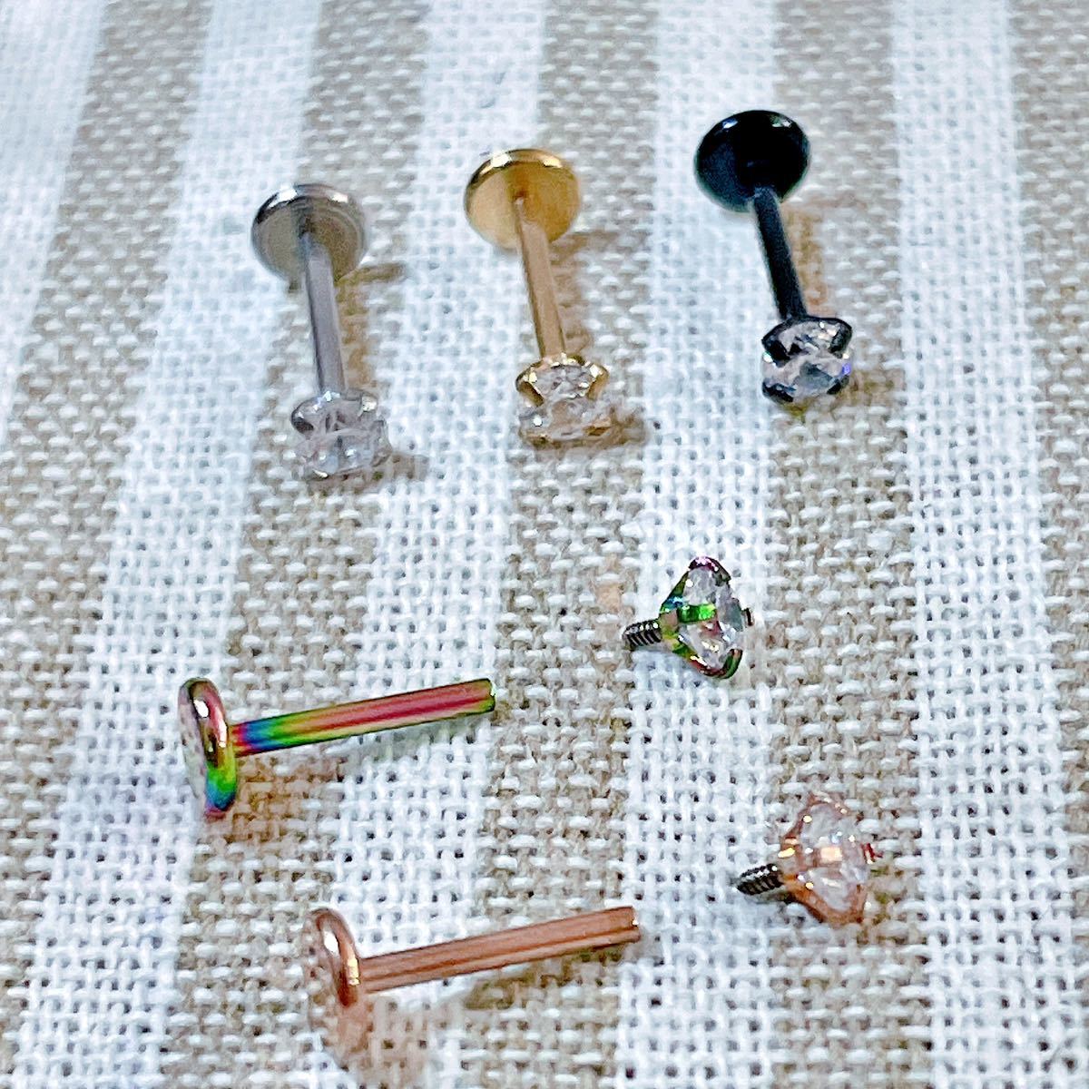 立爪でジュエルを固定した大人気のジュエルタイプのラブレットスタッド。どの角度から見てもジュエルの輝きを楽しめるので、どんな場所へのピアスにも使える。しかも、ネジ部分がジュエルに着いた逆ネジタイプなので、ピアスホールを傷つけにくく、肌に優しいピアスはファーストピアスにも最適。有名人も愛用のヘリックスやトラガスに使ったり、耳たぶに普通のピアスとしても使える最高の逸品!!