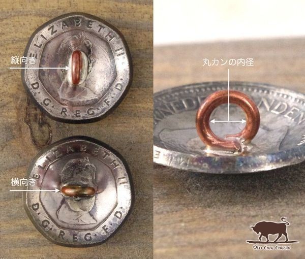 ご覧いただきありがとうございます。 実際に使われていた本物のコインで作ったコンチョです。 ループ式コンチョはご入金確認後の製作となります。 ご用途に合わせて、丸カンの「取り付け向き」・「穴サイズ(内径)」をご指定下さいませ。 ※ 丸カンは縦付けですと穴の向きは横、横付けの場合は縦穴になります。 (画像2枚目のサンプル画像をご参照下さい。) 製作に数日いただきますので、お急ぎの方は事前にお知らせ下さいませ。 商品画像にネジが写っている場合がございますがループ式コンチョには付属いたしません。 こちらは過去に撮影した画像を使用しております。 年号や色合い等が異なる場合がございます。 |