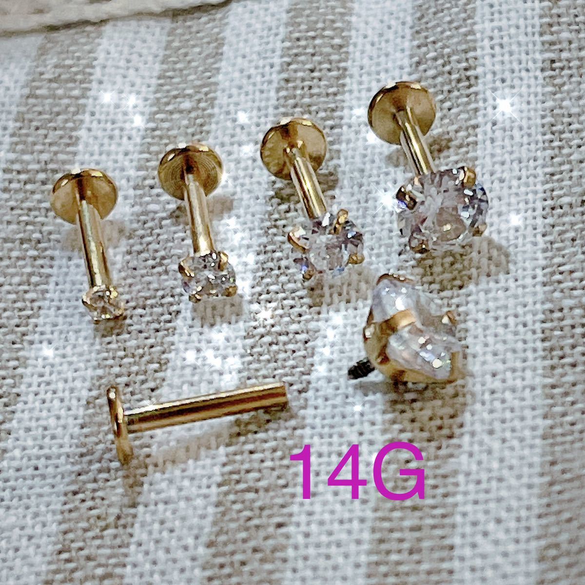 ダイヤカット 立爪 ジュエルラブレット 【14G】 インターナル 軟骨ピアス トラガス ヘリックス