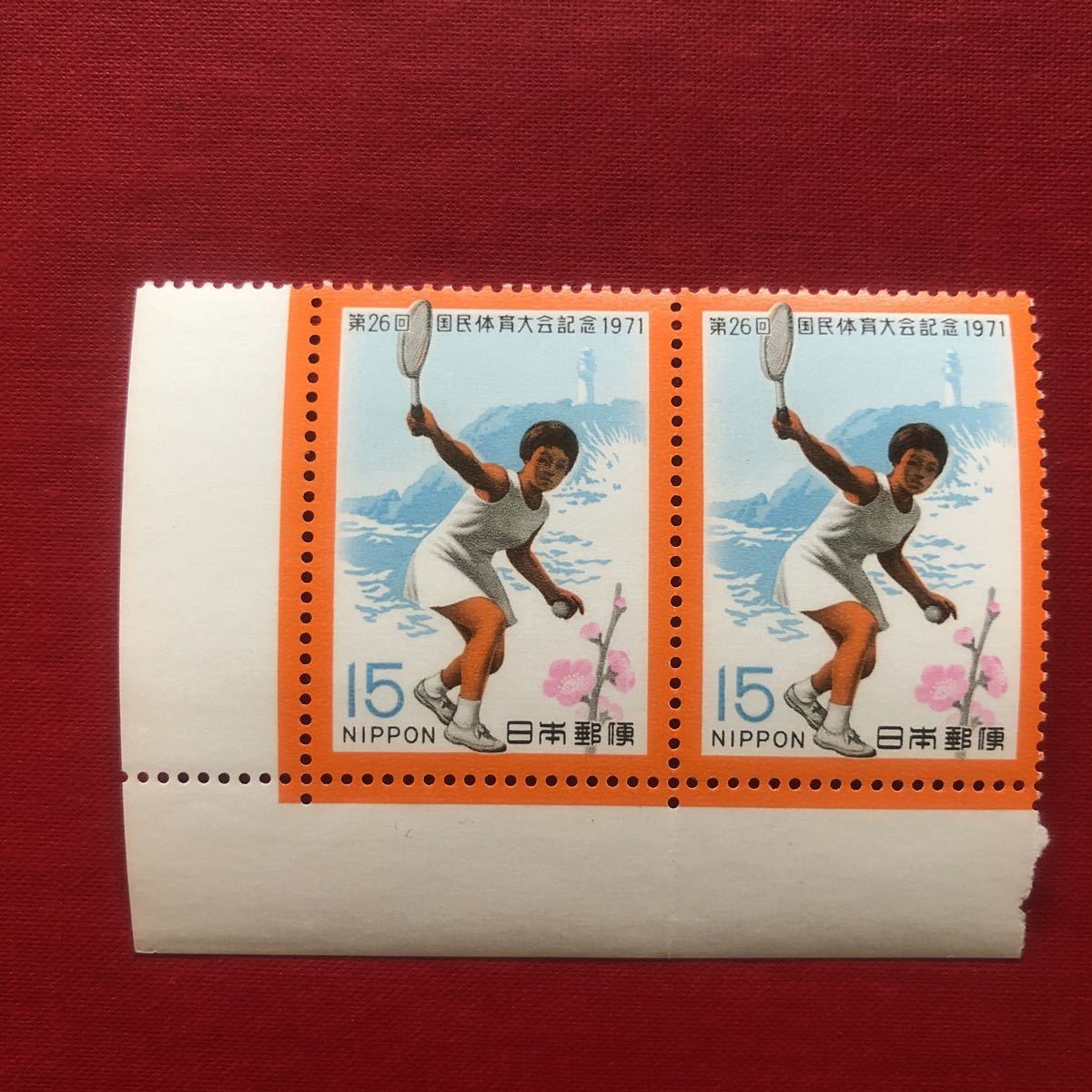 未使用 第26回国体記念(1971.10.24)記念切手、二枚ブロックです。
