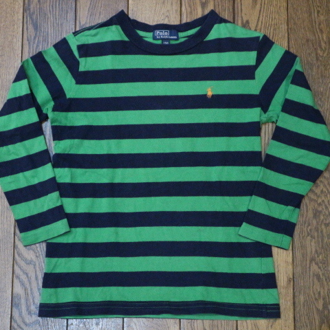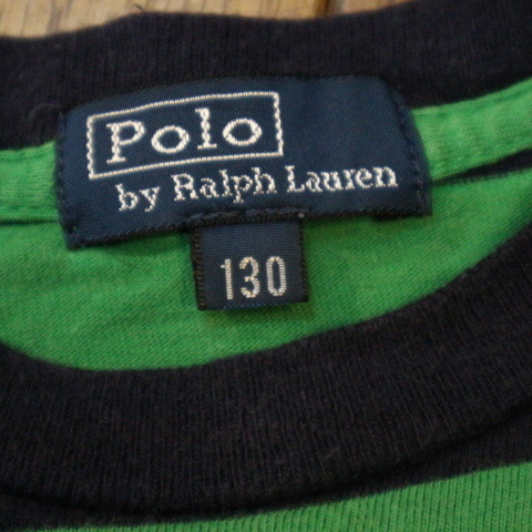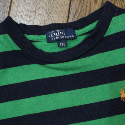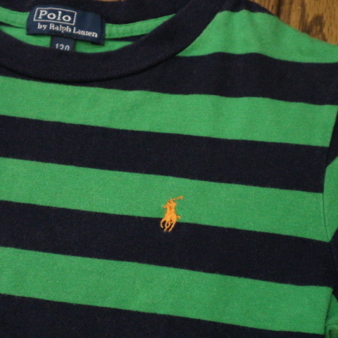 Polo Ralph Lauren キッズ ボーダー 長袖 Tシャツ 130 グリーン ネイビー ポニー 刺繍 ロンT ポロ ラルフローレン 子供服 ベビー服 kids