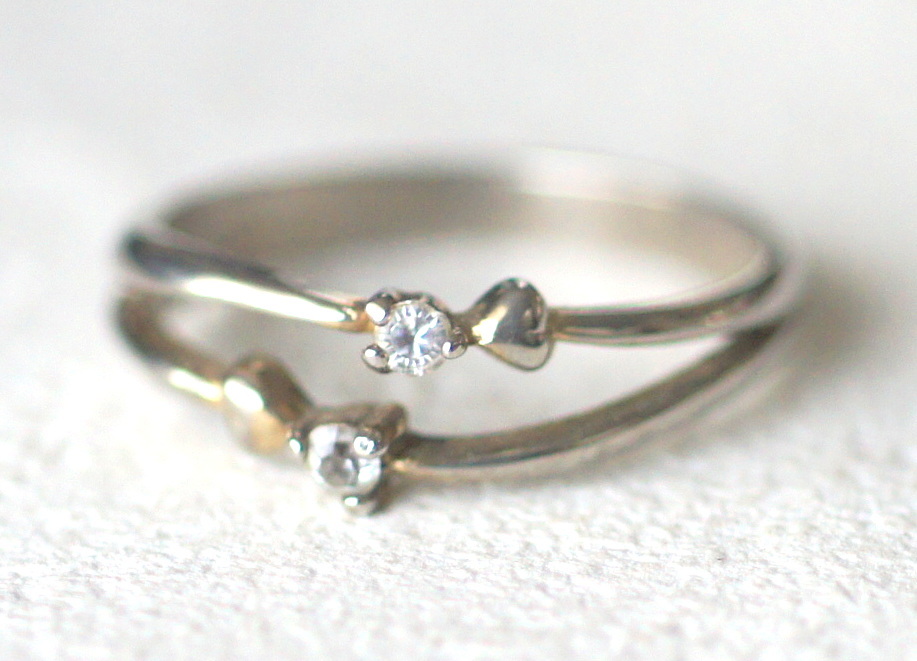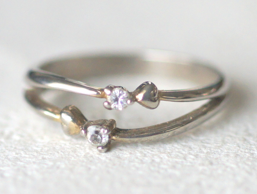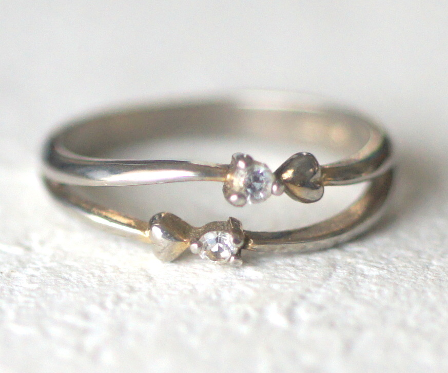 シルバー925製小さなリボン?ハート?が二つついたピンキーリングです。