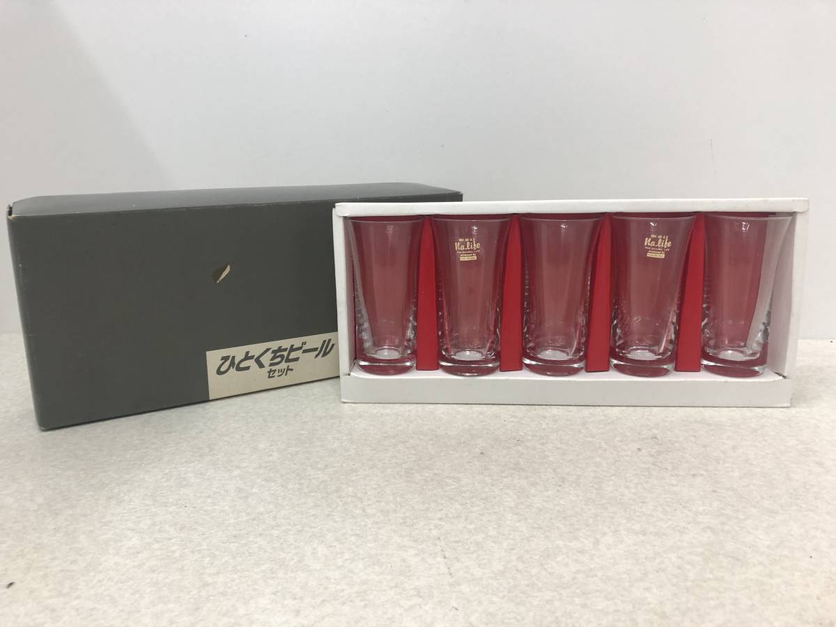 | 【E-14】 一口 ビールグラス 5客セット 未使用 | ||