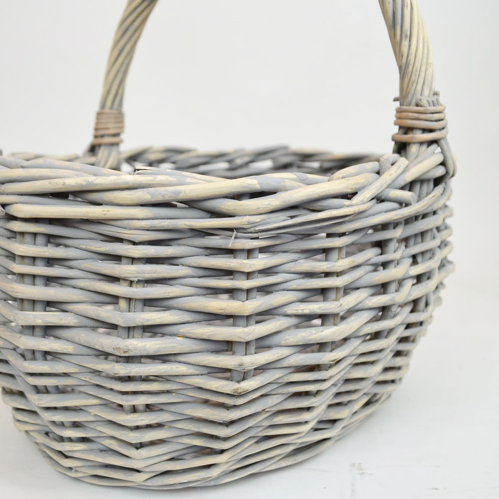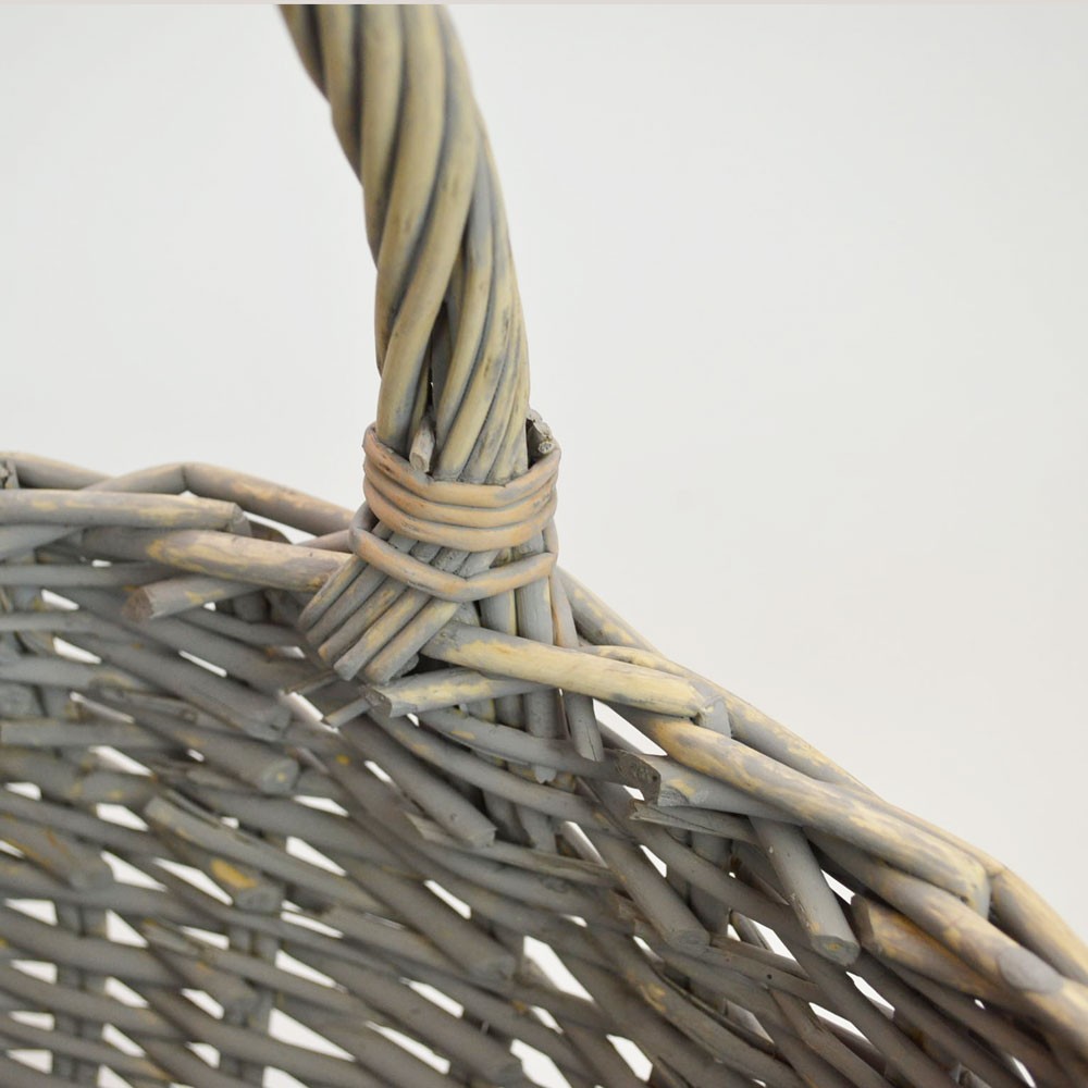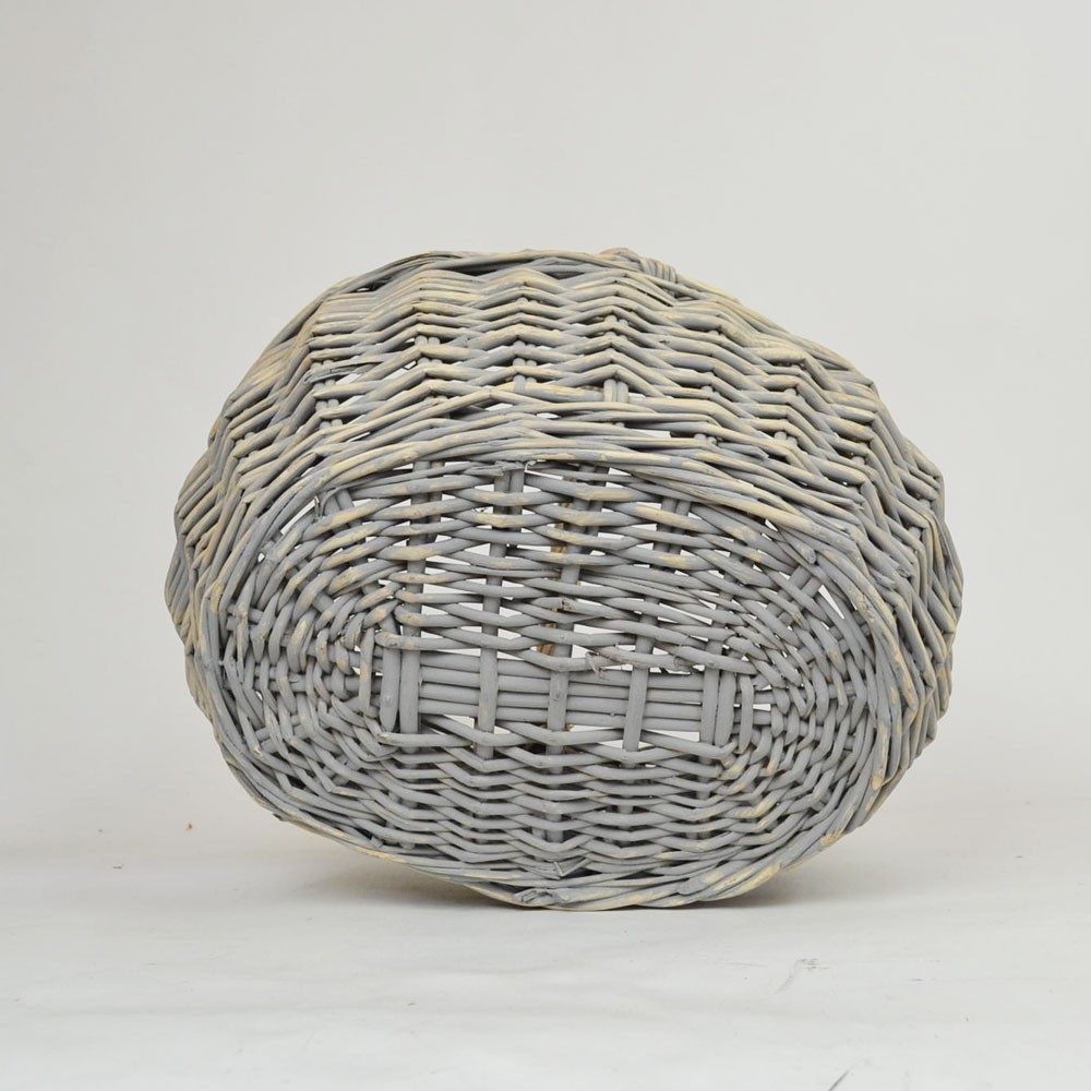 柳を編み上げ、薄いグレーの塗装を施しています。